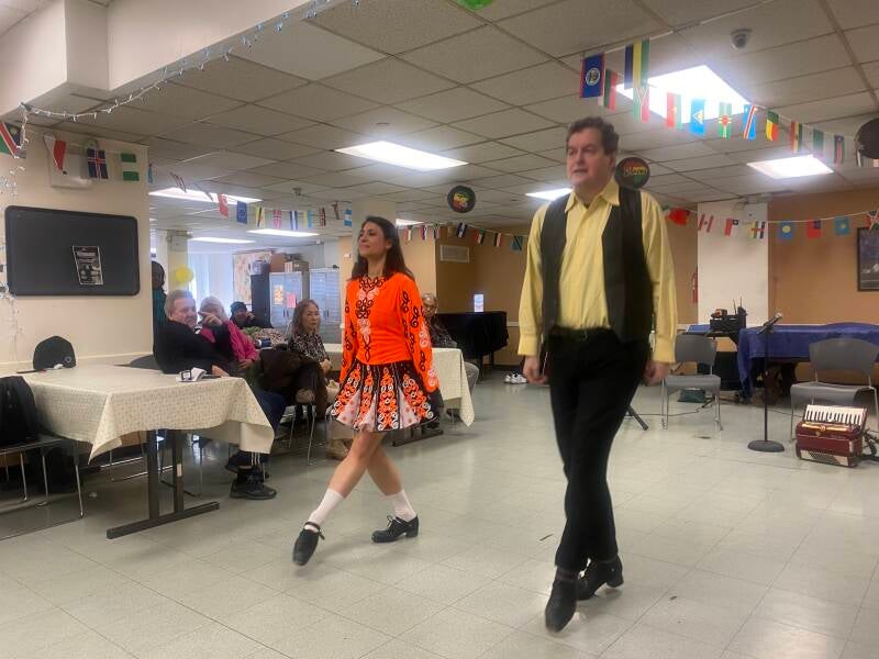 World Champion Irish two Step dancer Niall O'leary and his new partner help celebrate St Paddy's Day, with comedian Bob Hub (above at right) doing a short set about Texaco in Ireland, as a warm up act.
